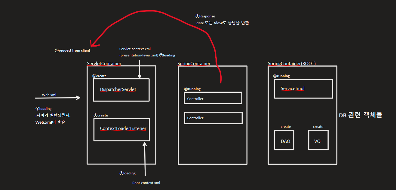 : 요청에 따라 html파일 혹은 데이터를 응답하게 되는데, html 파일을 응답할 경우 ViewResolver(view 파일이 들어있는 경로를 prefix로써 자동으로 붙여준다.)가 관여하게 되고, 데이터를 응답하는 경우 MessageConverter가 작동하게 되는데 메시지 컨버팅 시 기본 전략은 json이다.