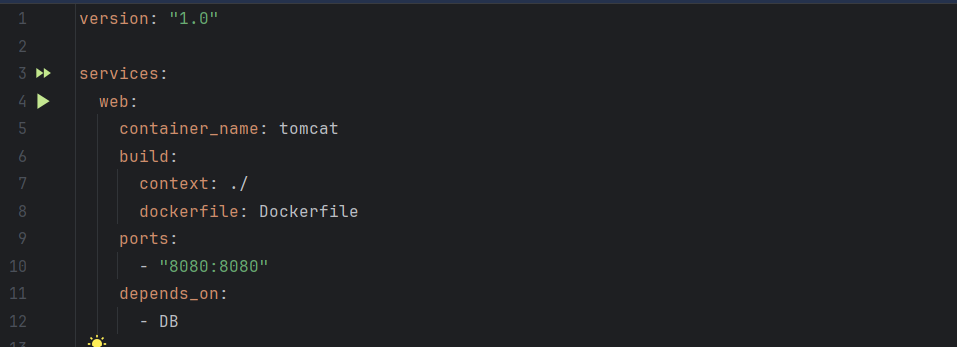 - depends_on: 컨테이너 생성 순서를 결정해준다. 'DB' 서비스를 먼저 작업하고 이후에 'web' 서비스를 실행해 컨테이너를 생성한다.