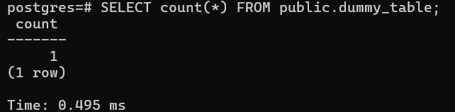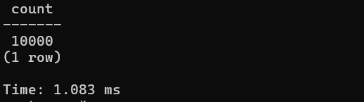 ** \timing 옵션을 활성화 시킨 후 건수 조회