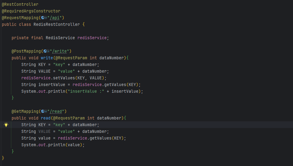 - springBoot 프로젝트에서 임의의 RestController 클래스를 만들고 jmeter 요청을 받아 읽기/쓰기 작업을 할 api를 생성해준다.