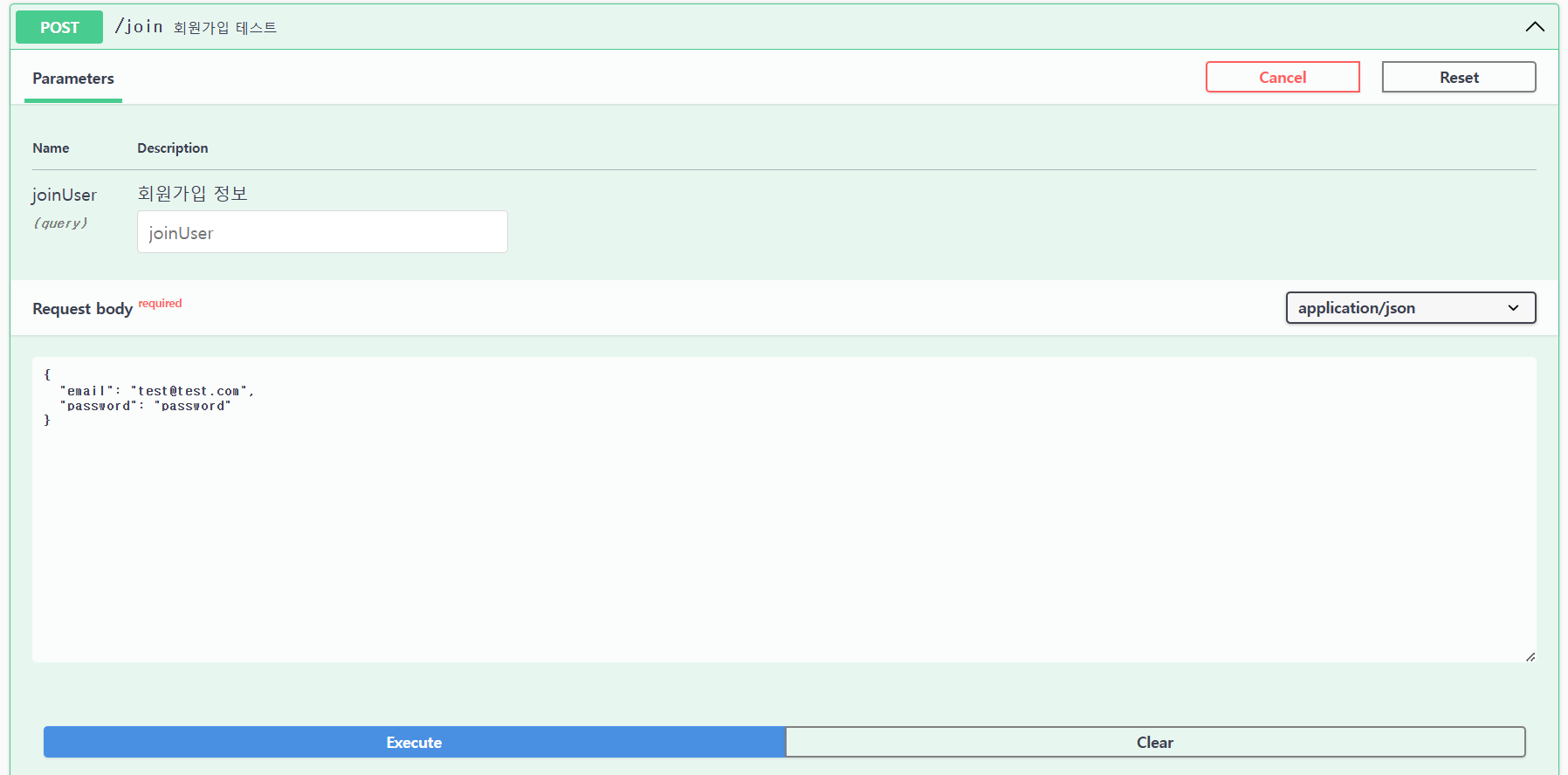 : 설정해 둔 Swagger 테스트 페이지에 접속해 회원가입 및 로그인 요청에 대한 결과를 확인한다.