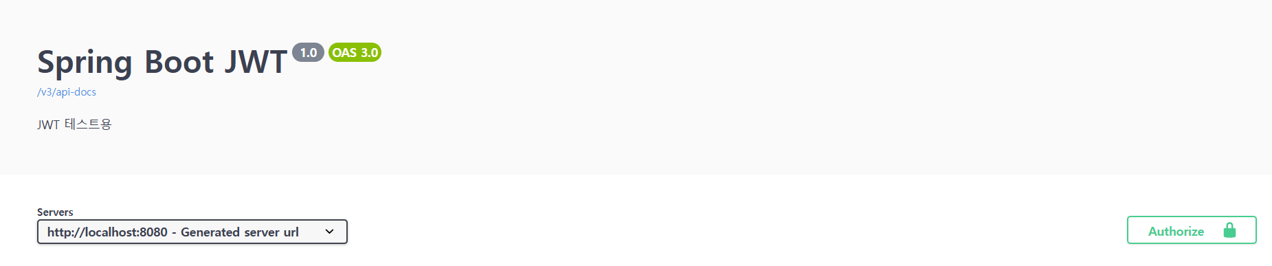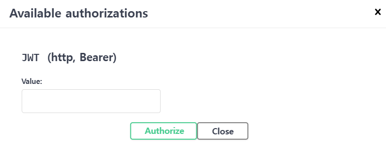: 설정이 성공적으로 완료되면 api 문서에 아래와 같이 Authorize 버튼인 생성된다.