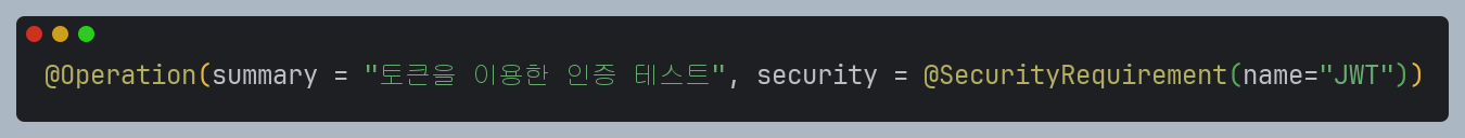 JWT 인증을 적용하려는 API에 대해 JWT 토큰을 요구한다고 명시하는 부분