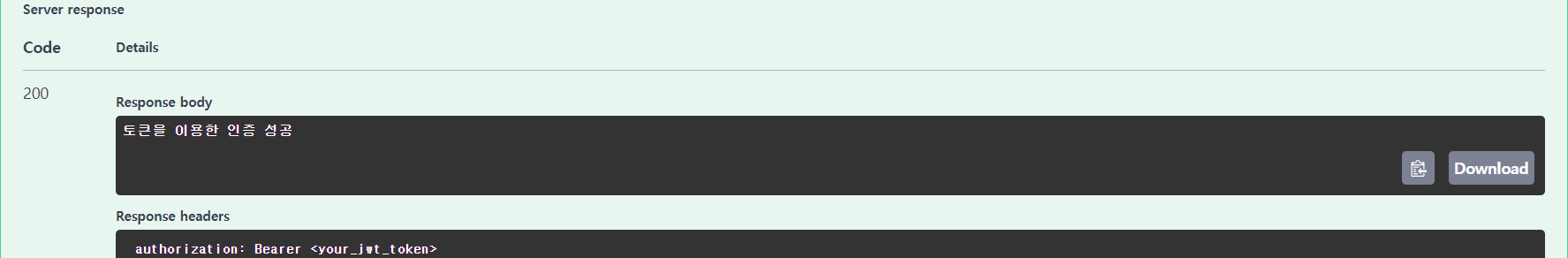 : 스웨거에 JWT 토큰을 이용한 api 요청의 처리를 위해 SwaggerConfig 파일과 인증용 api에 다음의 설정을 추가해준다.
