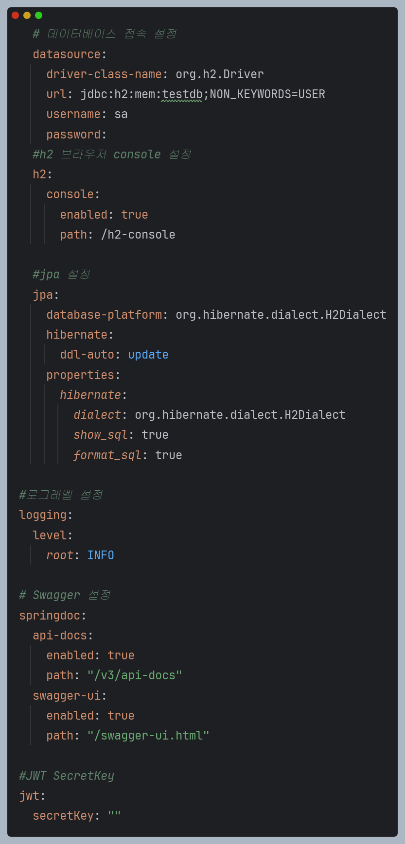 ** application.yml 설정파일에 들어갈 내용은 아래와 같다.